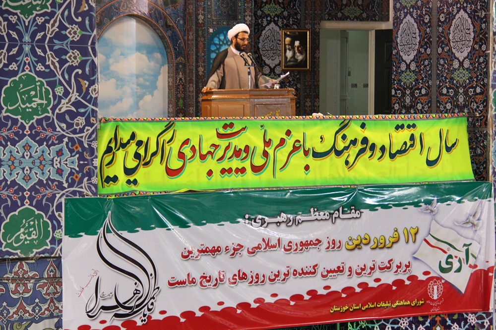 سخنران قبل از خطبه 8 فروردین 93 حجت الاسلام جعفری رئیس شورای هماهنگی تبلیغات اسلامی استان خوزستان